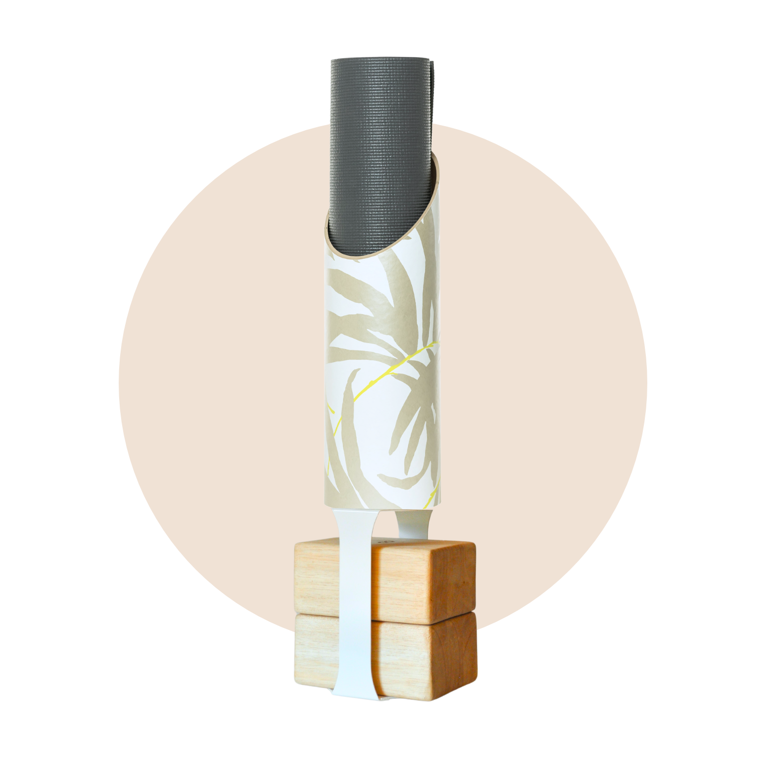 Yoga Floor Stand/Bracket fastens easily to the eco-friendly Yoga Mat Tube and accommodates yoga blocks, books and straps, all neatly organized in one convenient and inspiring place. No more tripping over your yoga props! Select a stunning designer combination that not only acts as functionally efficient yoga/fitness storage, but sustainable home decor too.